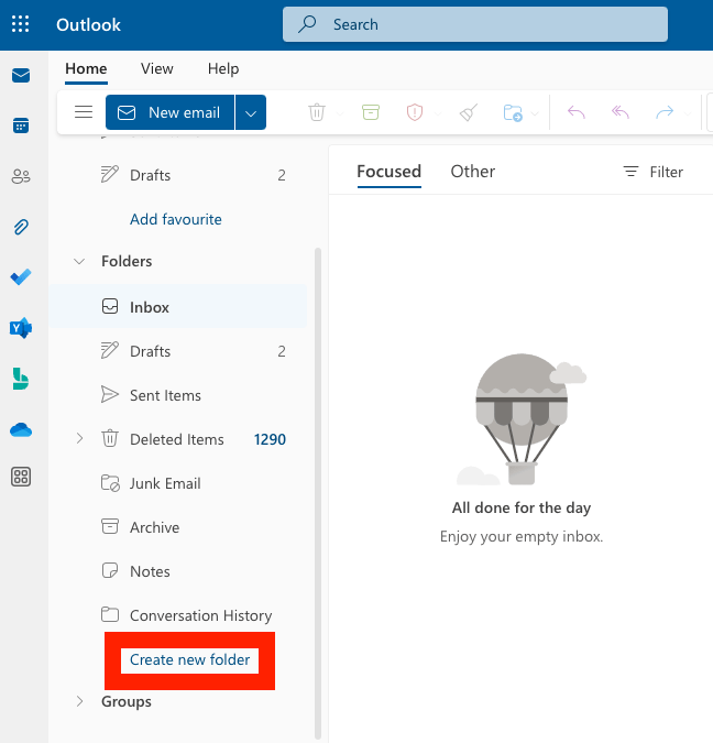 Next, we need to prepare the mailbox we are using, by creating the folders we are moving emails into.