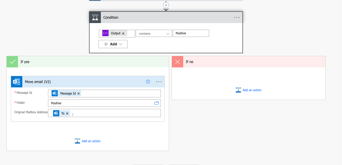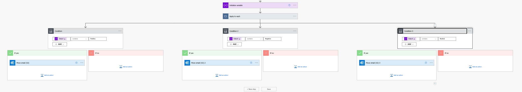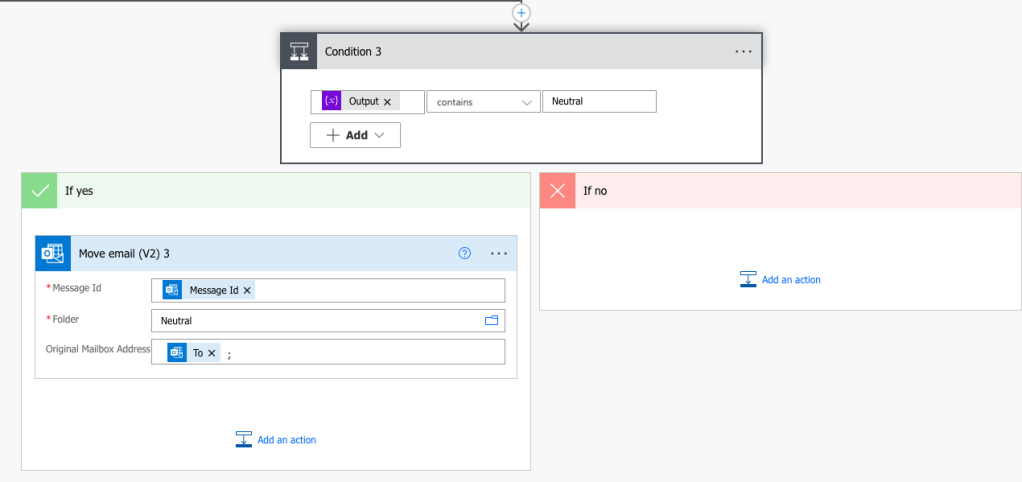 What can we do with this? As a proof of concept I am creating a flow that can sort incoming support emails based on the tone of the language. We are going to move the emails into folders named Positive, Negative, and Neutral.