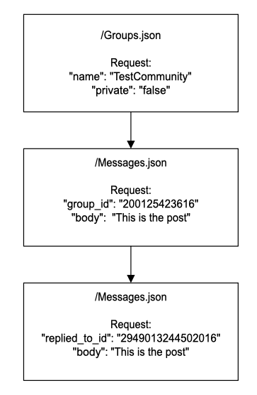 The API “flow” for recreating the community/posts/comments in Viva Engage would look something like this: