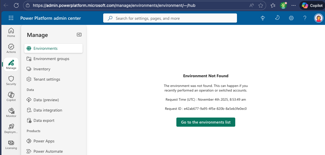 “https://admin.powerplatform.microsoft.com/manage/environments/environment/8908b4f2-71da-e29b-a1cd-da124dc14155/hub“