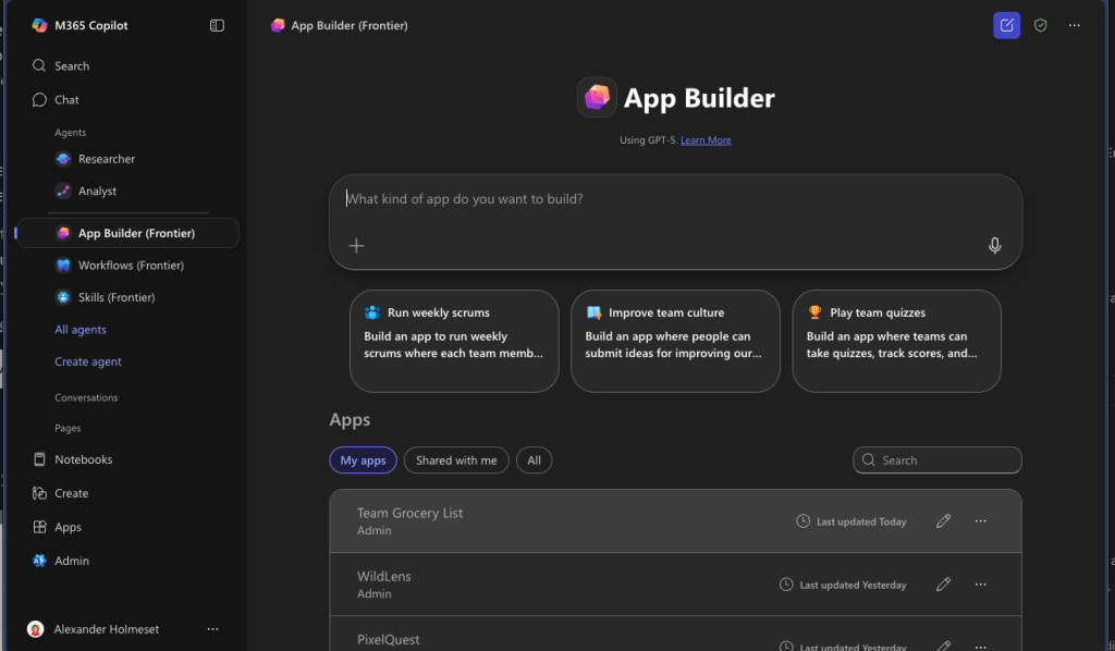 Microsoft recently released the App Builder agent under the Frontier program for early access.