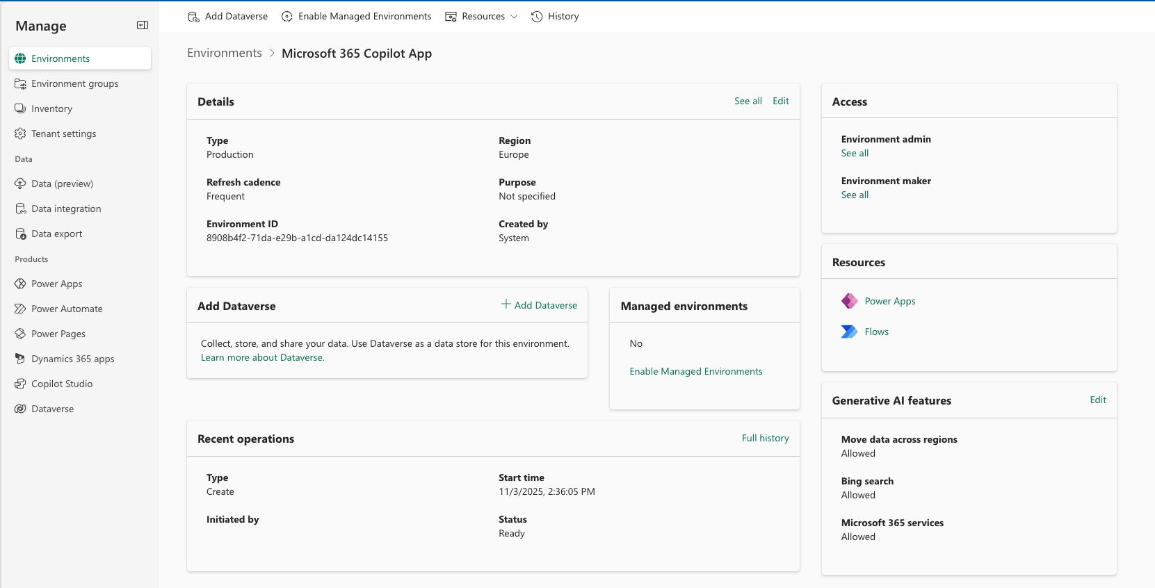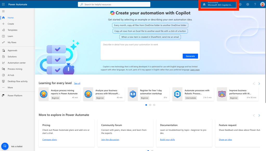 Turns out you can construct the link to the environment in Power Automate, but again you don’t really find anything there.