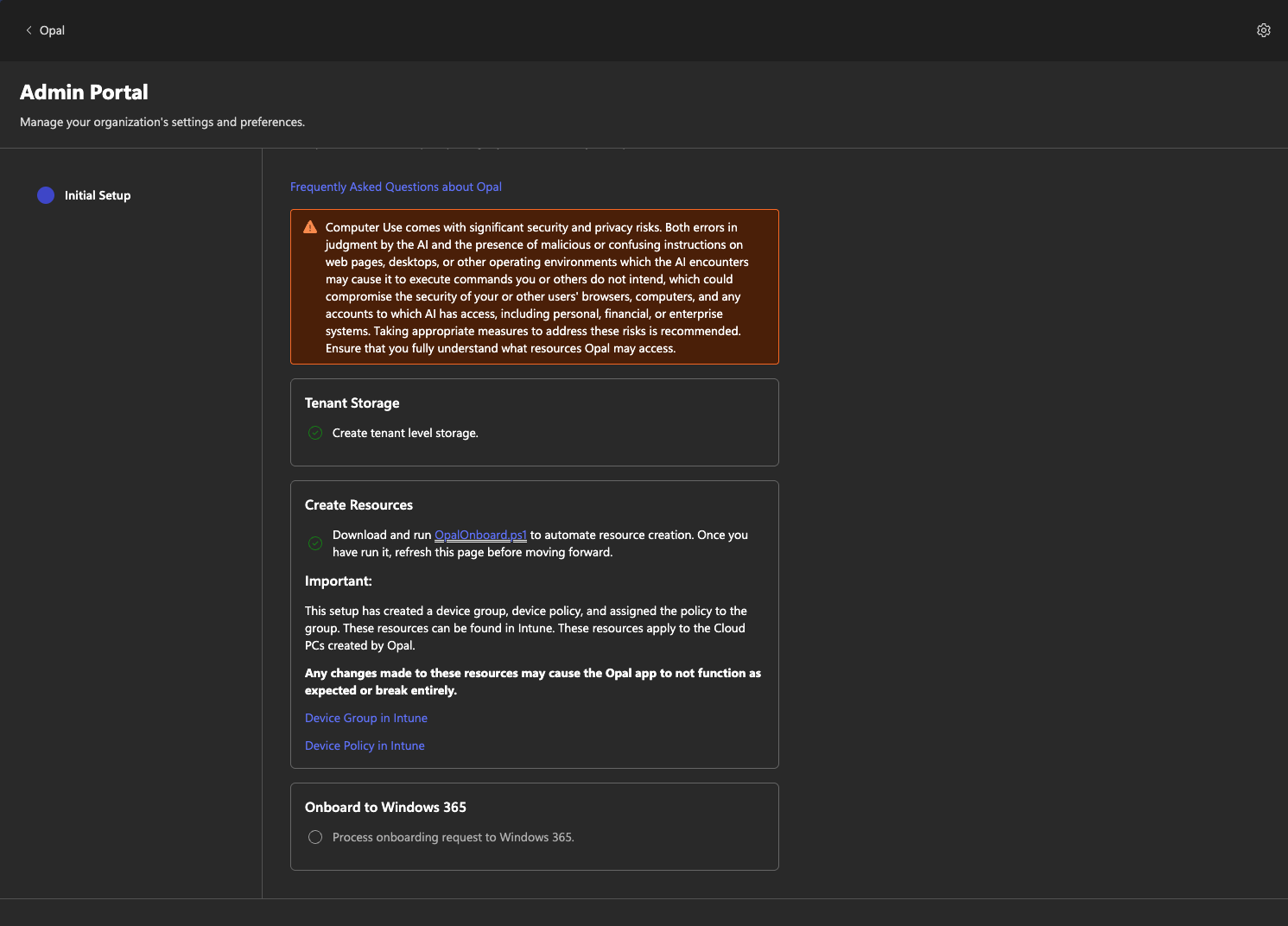 When adding the security group it highlights you need to do a one time setup in the Opal admin portal.