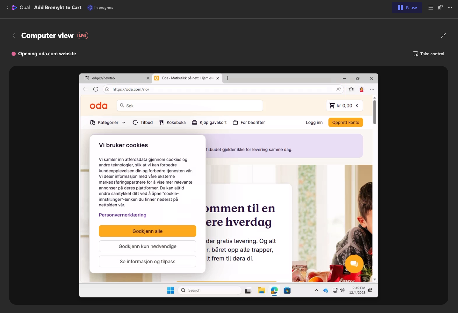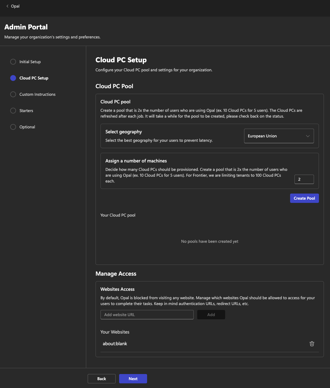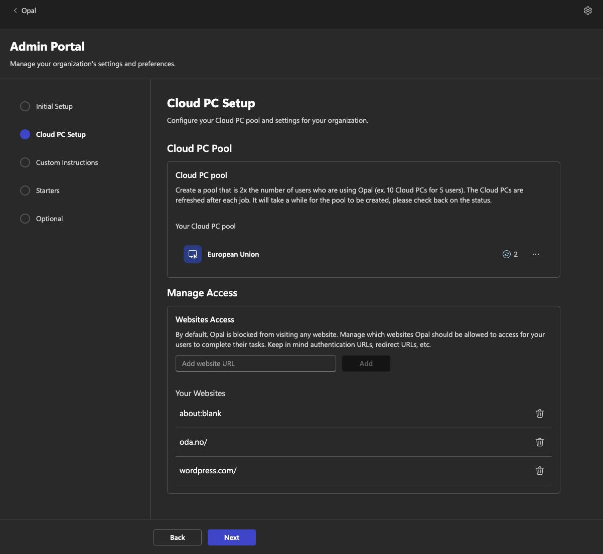 You need to add websites that Opal needs to use for your tasks on an allow list.