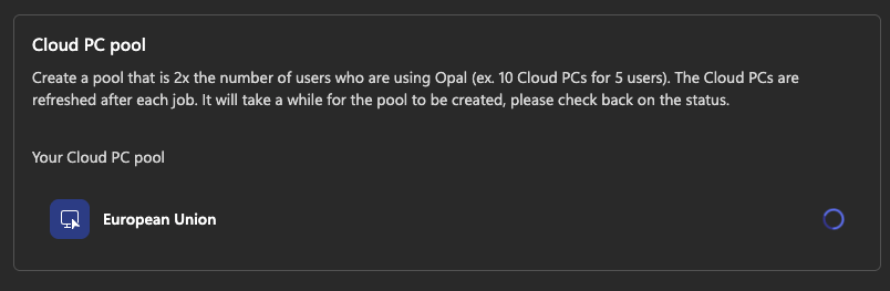 After the script is finished you continue the setup in the admin portal and it will start to setup the Windows 365 part.