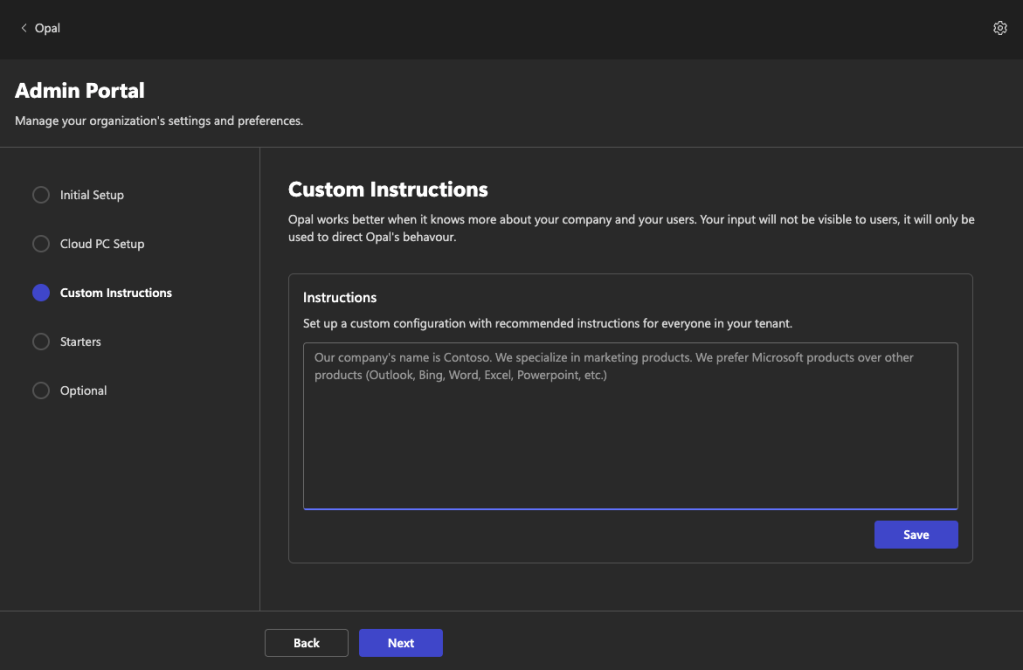 Here you can add some instructions that Opal will read for all requests the end users send.