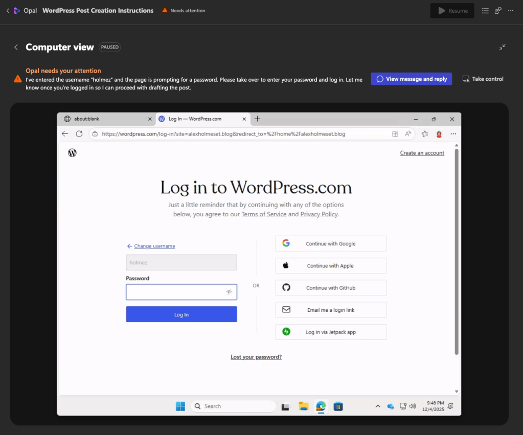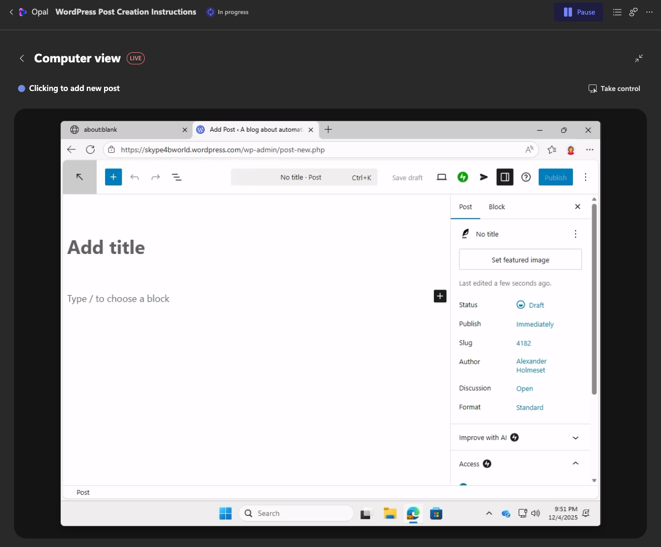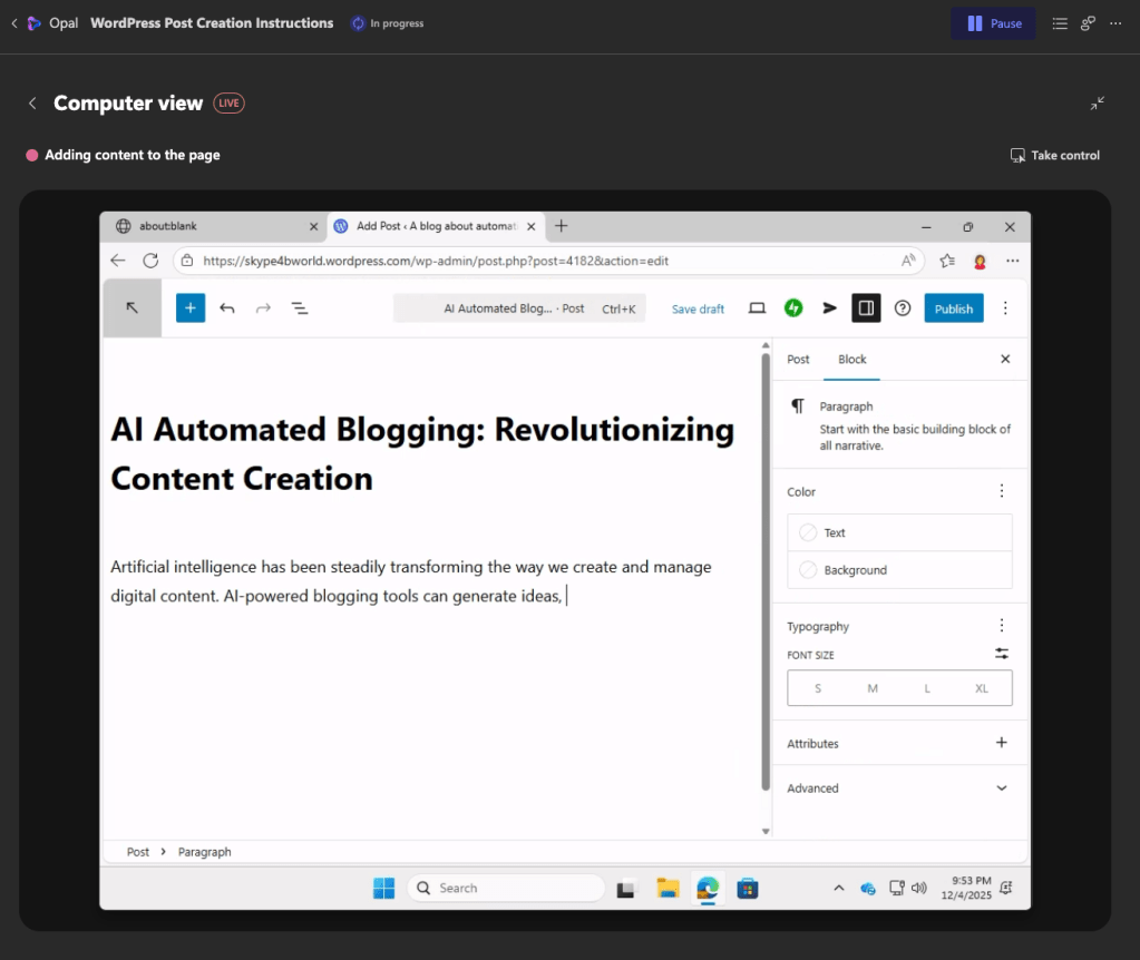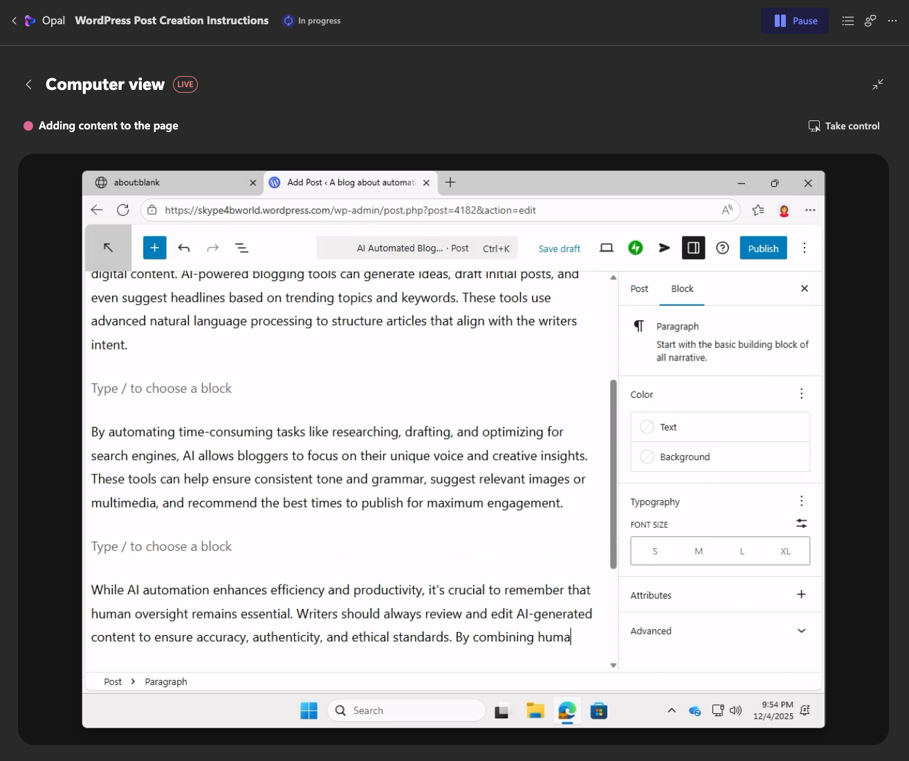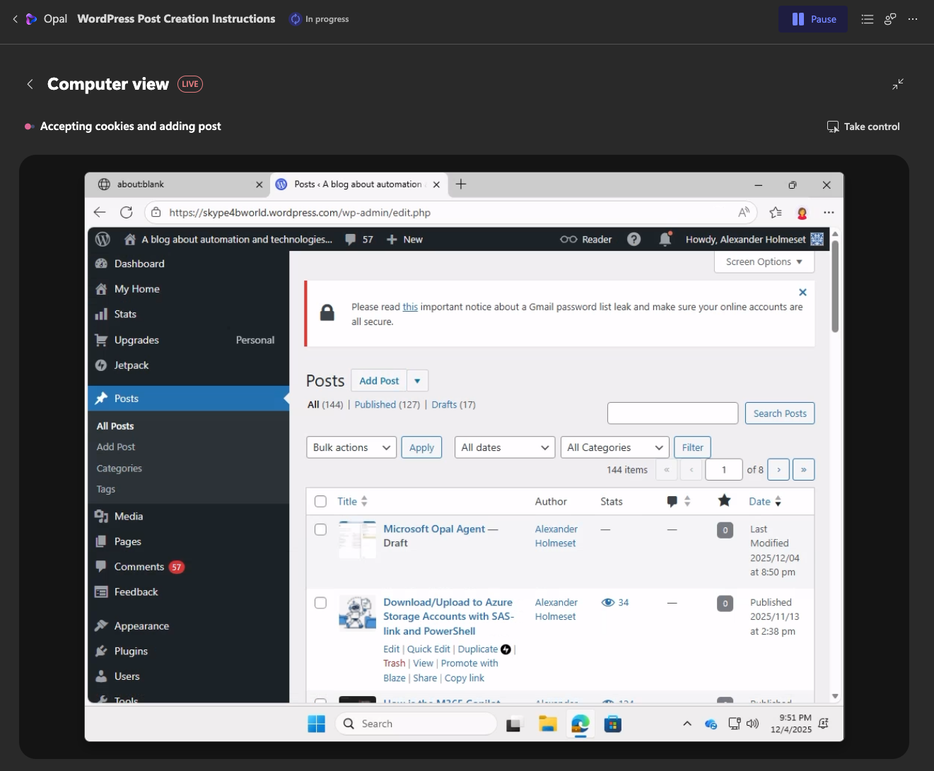 Next task was to ask it to log on to my WordPress account and create/publish a new blogpost.