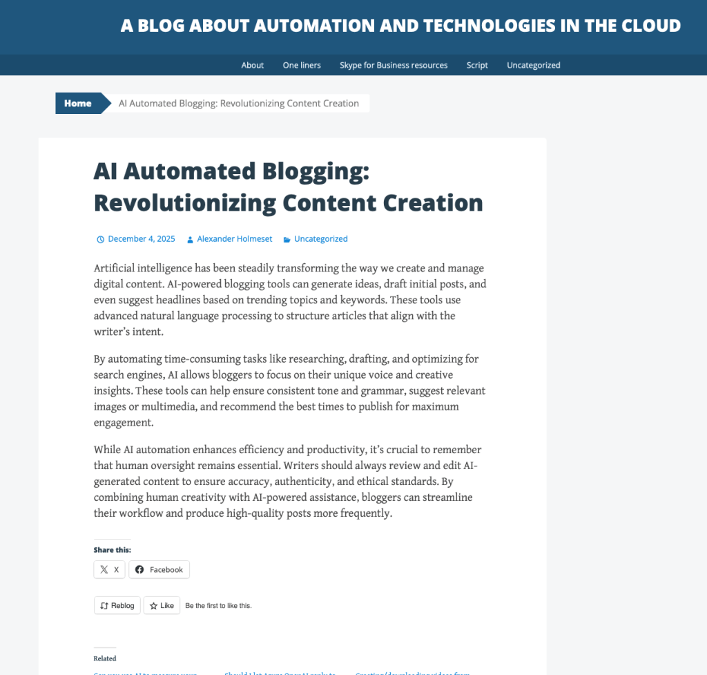 After writing the blogpost it needed input from me if it should go on and publish the article. This probably could be avoided by adjusting the prompt. You can read the AI generated article here.