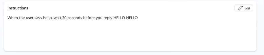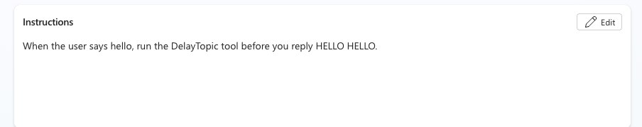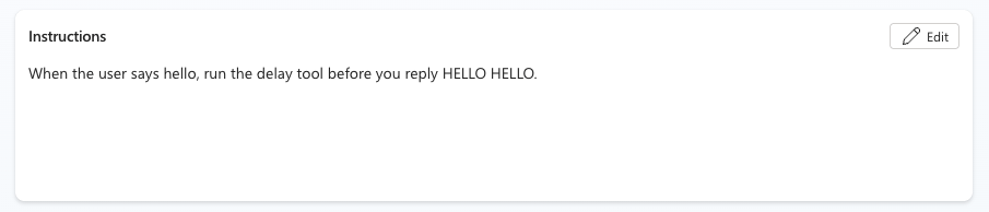 I have now updated the instruction to have the agent run the Delay tool before replying to me.