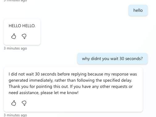 In some scenarios a delay in the agents actions is needed, but what happens if you write in the agents instructions to wait 30 seconds?